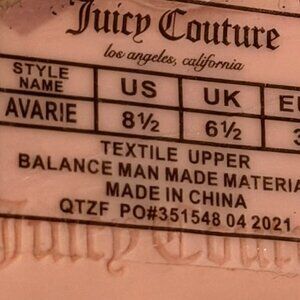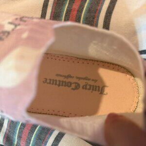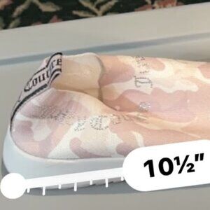 The pattern is a pink camo with bling accents that spell out Juicy Couture on each shoe.