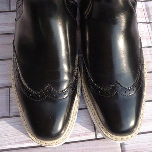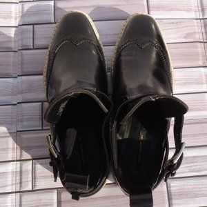 SIZE EU 37. ZARA BASIC wedge cut-out ankle booties buckle wingtip black.