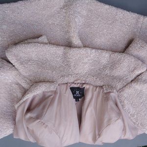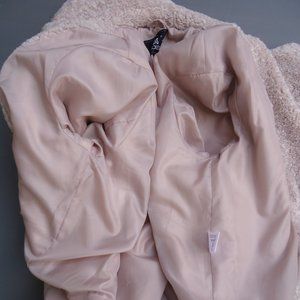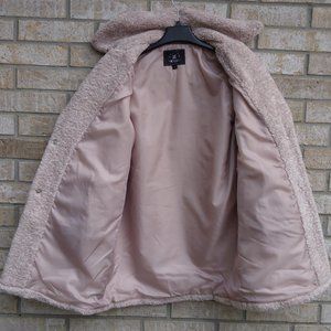 100% polyester faux shearling. Dry clean. NEW condition. Pls zoom in all pictures for details and condition. Please review all photos carefully to judge condition prior to purchasing. Item In Pictures Is The Exact Item You Are Purchasing . From a smoke-free home . Approx. flat measurements: Length: 34". Pit to pit: 22.5". Sleeve Length: 24". Shoulder: 17.5".