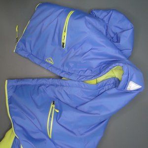 SIZE XL (18). L.L. Bean girl's blue hooded puffer jacket will stay plenty warm while looking cool. Color Iris. Functional zipper closure. Inner cozy yellow fleece lining. Front 2 zip pockets on side. 2 pockets inside. Water resistant. Shell 100% nylon. Insulation 100% polyester. Machine washable. From a smoke-free home. Clean inside and out. Please zoom all photos carefully to judge conditions prior to purchasing. Item in the pictures is the exact item YOU ARE Purchasing. Approx. measurements: Pit to pit 21", length 24.5", sleeve 24", shoulder 17".