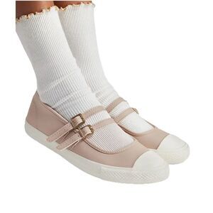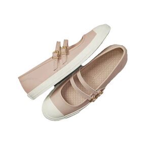 Ultra-low profile and two buckle straps to allude to the timeless Mary Jane style