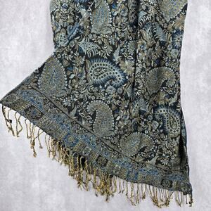 SJ Collection Blue Floral Pashmina Fringe Floral Long Shawl Scarves Wrap Scarf