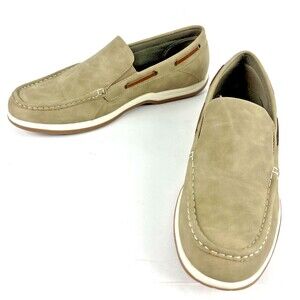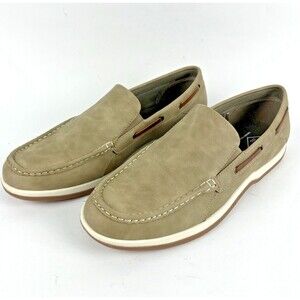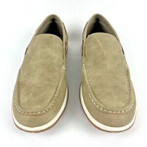 SJB Oakdale Sand Mens Loafers Shoes Slip-on Faux Suede Casual Boating SZ 12 Foam comfort Accented with brown lacing and white stitching MSRP $75