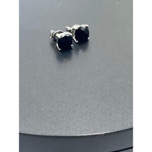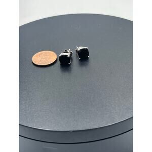 SJM Genuine 925 Sterling Silver Black Onyx Stud Earrings 8mm Signed 3g