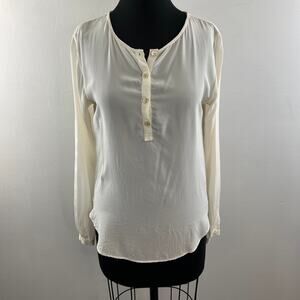 SJOBECK Cream Silk Back Contrast Cut-Out Long Sleeve Pullover Blouse Top Size XS