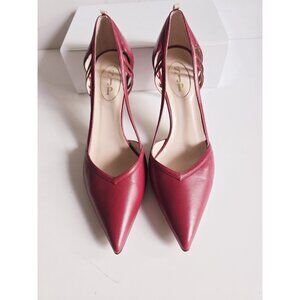 SJP Sarah Jessica Parker Pointed Toe D'Orsay Red Pump Heels Ahoes 9.5 Italy 39.5
