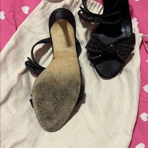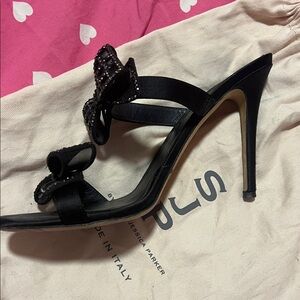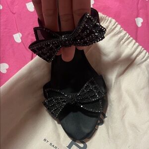 Chic black strappy heels with bow detail. Crafted by SJP by Sarah Jessica Parker. Ideal for elegant outings.