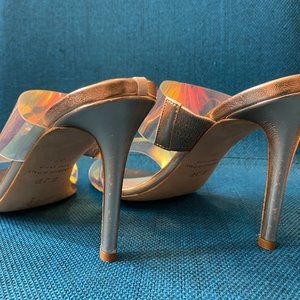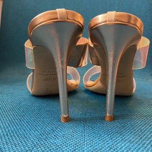 Stylish iridescent heels with clear straps. Perfect for any occasion. 4 inch heel. Reposh. Loved them but can’t wear heels like I used to. 4 inch stiletto heel. Photos on carpet show current wear.