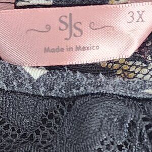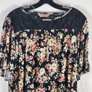 SJS Black Salmon Cream Floral Rayon Span Flutter Sleeve Lace Neck Top Size 3X