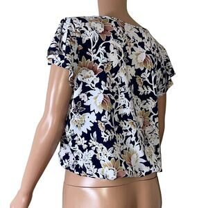 SJS Blouse top floral textured elastic waist Petite Large black & white