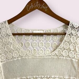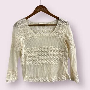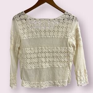 SJS Crochet Top Ivory Semi Sheer Vintage Cottagecore Coquette VTG