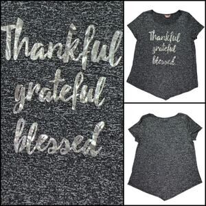 SJS Marled Black Gray Scoop T-Shirt Thankful Grateful Blessed Silver Metallic Lg