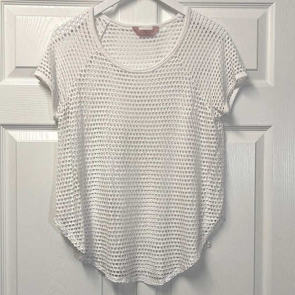SJS white short sleeve mesh top in size small.