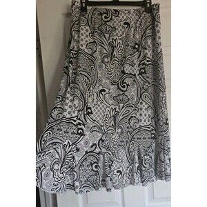 SJS Skirt Black & White Paisley Print midi-calf lengthWomens Sz Large L Damask