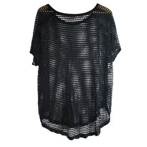 SJS Black Swim Cover Up Top Beach Pool Mesh Fishnet Round Neck Short Sleeves