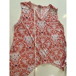 SJS‎ Women's 2X Sleeveless Floral Blouse Orange White