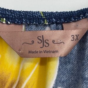 SJS Womens 3X Pullover Knit Top Denim Blue Bold Sunflower Print On Off Shoulder