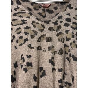 Add some sparkle and wild flair to your wardrobe with this SJS Sweater in a women's size Large. This eye-catching piece features a bold leopard print pattern in neutral tones, making it versatile enough to pair with jeans, skirts, or dress pants.