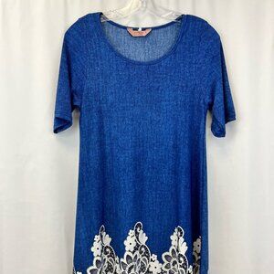 SJS Womens Shift Dress Multicolor Floral Stretch Scoop Neck Short Sleeve M