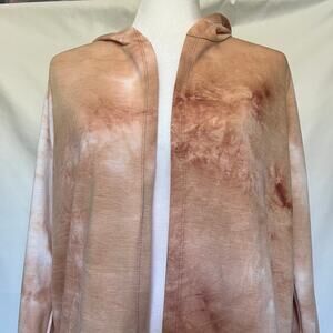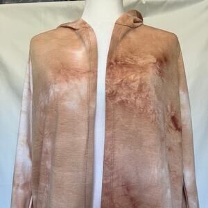 SJS Womens Wrap Cardigan Hooded Top SIze Medium Peach Open Front Tie Dye Boho