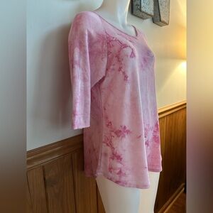 SJS pink tie dye, watercolor pattern pink super soft top, sz S women’s, comfy, 3/4 length sleeves