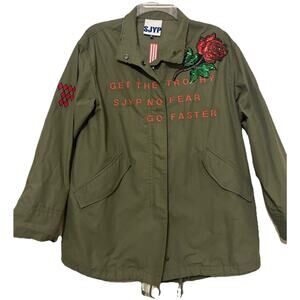 SJYD SteveJ & Yonip Sz Small Utility Jacket Green Embroidered Embellished Korean