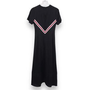 SJYP Jersey Layered Midi Dress L Short Sleeve Crew Chevron A-Line Pocket Black