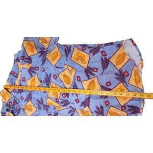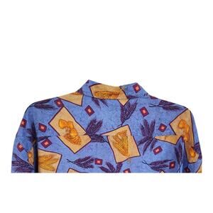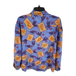 SK & Co Blouse Silk Print Size Large Long Sleeve Collared Button Down Shirt Blue