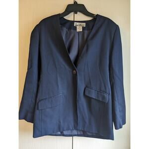 SK & Company Women's Navy Blue Single-Button Blaze & Pant Set Size 12P