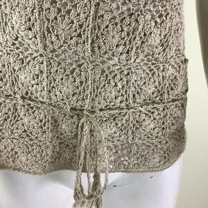 SK Imports Womens Sz M Hand Crochet Top Brown 100% Cotton Short Sleeve