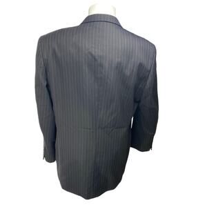 S&K Men's Black 100% Wool Pinstriped Long Sleeve Blazer Coat Suit Jacket Size 46