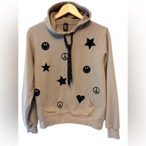 SK Tan Soft Hooded Sweatshirt with Black emojis, Womens size Medium