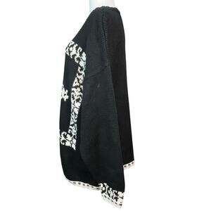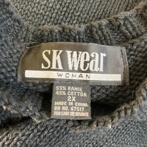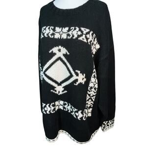 SK Wear Vintage Black White Ramie Cotton Crewneck Geometric Boxy Sweater 2X
