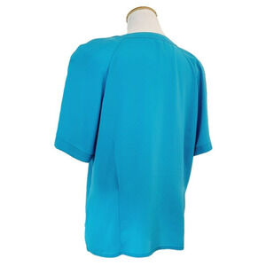 SK and Company Vintage Blue Teal 1980s Shoulder Pads VTG 80s Shirt Size 14