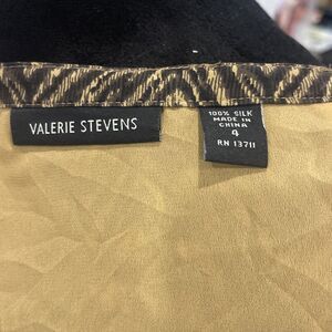 Silk long maxi/midi skirt by Valerie Stevens with a geometric animal print pattern. Measurements laid flat Waist: 14 Waist to hem: 36
