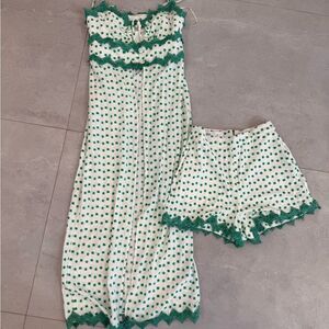 The set consists of a top and shorts made from viscose, a lightweight, textured fabric with a fluid fit. Its top has a maxi design, thin straps, lace details and a front slit. While its shorts feature a straight fit and high waist. Bringing movement to the piece, its fit brings modernity to the look and balances it with the timelessness of its color. Go for casual combinations with flats and sneakers for daytime looks, or lace-up heels for impactful nighttime looks!