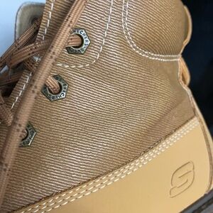 Youth Skechers Adventure boots TAN in size 3.5 in great shape for a kids boot. One toe kick on the left, and a heel kick on the right, a little splash on the inside right. Lots of tread left..