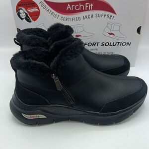 SKECHERS Arch Fit Black Casual Hour Winter Booties-9.5