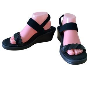 SKECHERS BLACK MEMORY FOAM SLINGBACK WEDGE SANDALS 11 NWOB