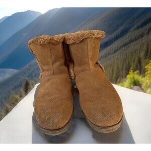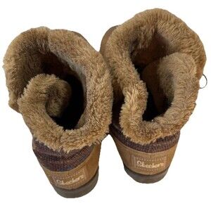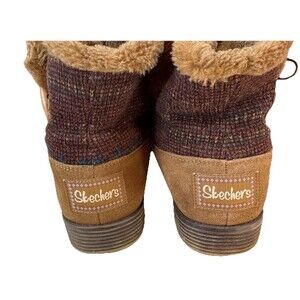 SKECHERS Boots Women's 10 Tan Suede Leather Faux Fur Lined Ankle SN 48677