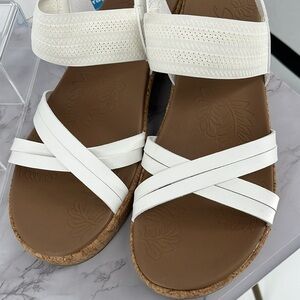 SKECHERS Cali Brystol Vegan Slingback Heeled Sandals White 11 Comfy Casual