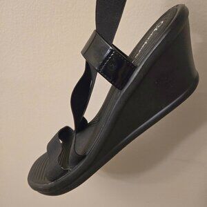 STYLE: Women's Ramblers Black Strappy Wedge Open Toe Sandals