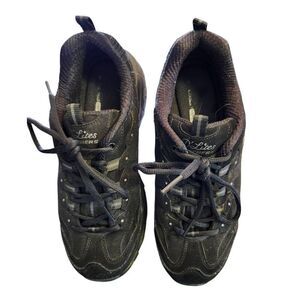 SKECHERS D'Lites Play On Black LEATHER Memory Foam Sneaker Shoes Size 8.5 Lightly Used
