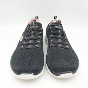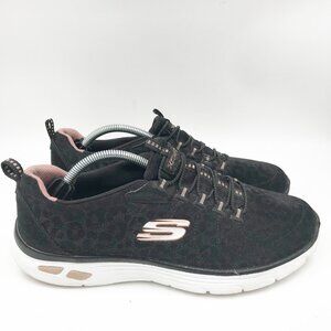 SKECHERS Empire Delux Spotted Relaxed Black Rose Gold Slip On Sneakers Women 8.5
