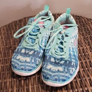 SKECHERS Flex Appeal 11884 Tie Dye Sneakers Sz 7.5 Mint Green Aqua Comfortcore