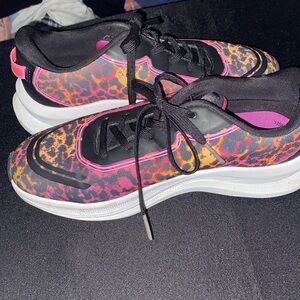 SKECHERS GOGA MAT AIRCOOLED GIRLS SIZE 4.5 PINK LEOPARD DESIGN LACE UP SNEAKER