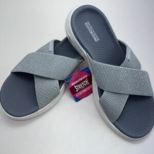 SKECHERS Go Walk Sandals, Women's Size 7, Glistening Silver