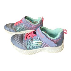 These Skechers Microspec Plus sneakers for girls are a size 13. They're pre-owned and still have lots of life remaining. Features include: