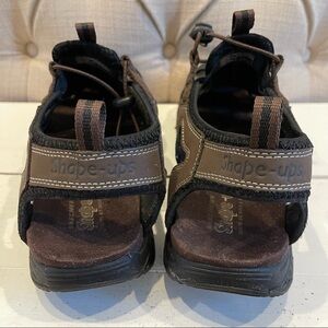 Sz 11 Good used condition Black part of the inside strap material is flanking off. Took most of it off but still have some residue.