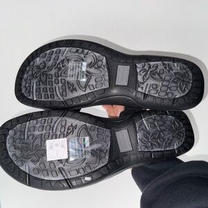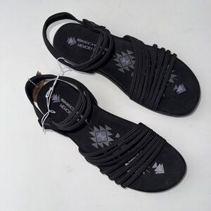 SKECHERS New $60 Womens 11 Black Reggae Strappy Flat Stretch Sandals Box 10B